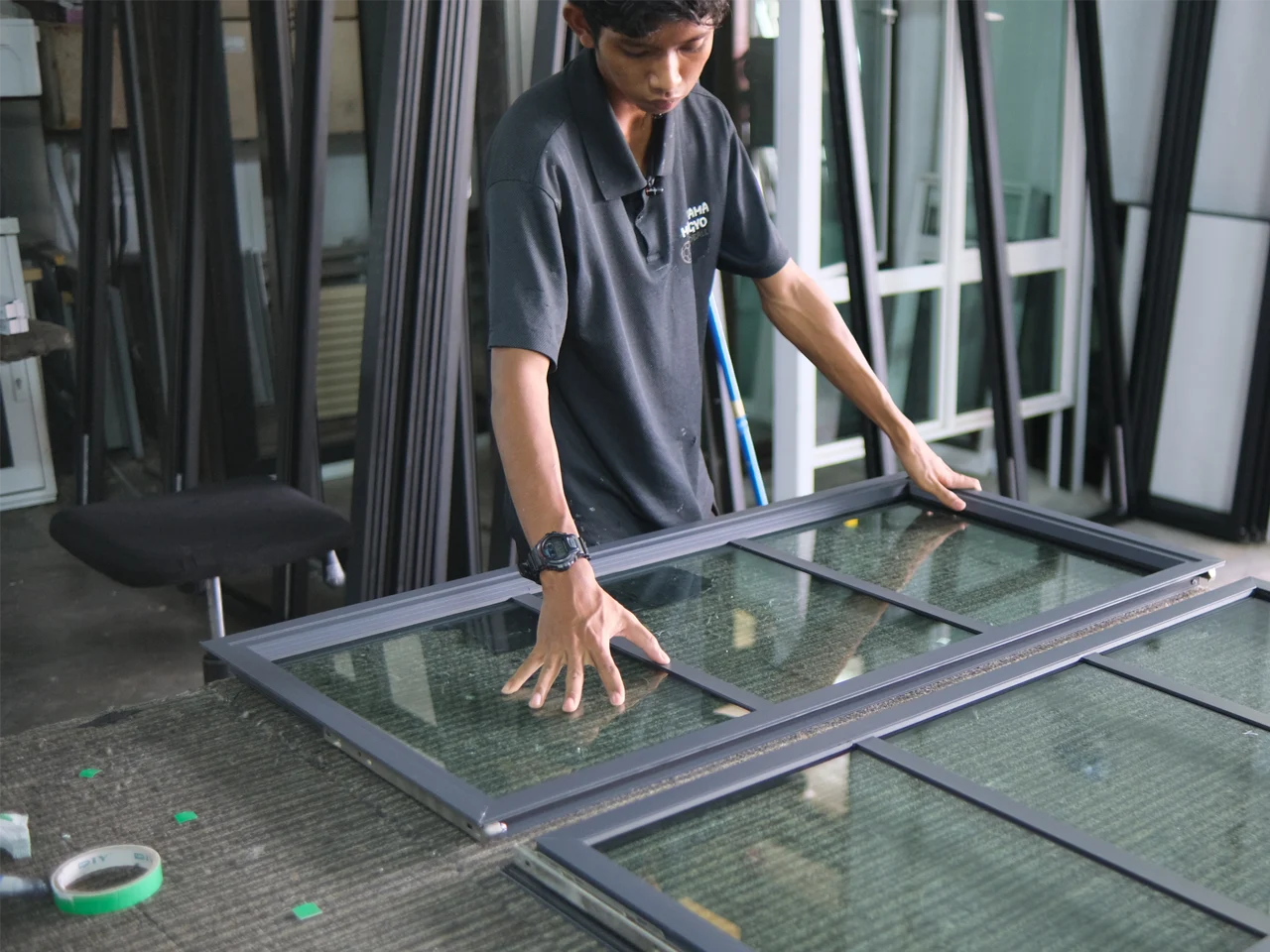 Membuat dan memasang bingkai tingkap, pintu dan kabinet aluminium.