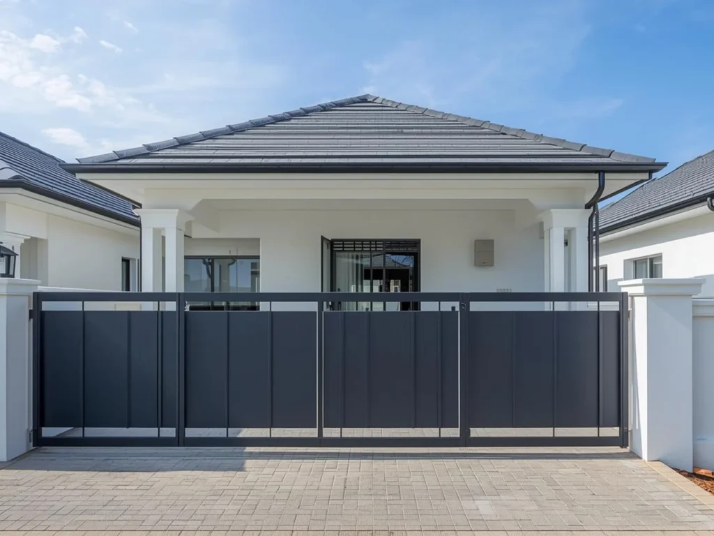 Pemasangan bumbung, gutter GI dan gate rumah.